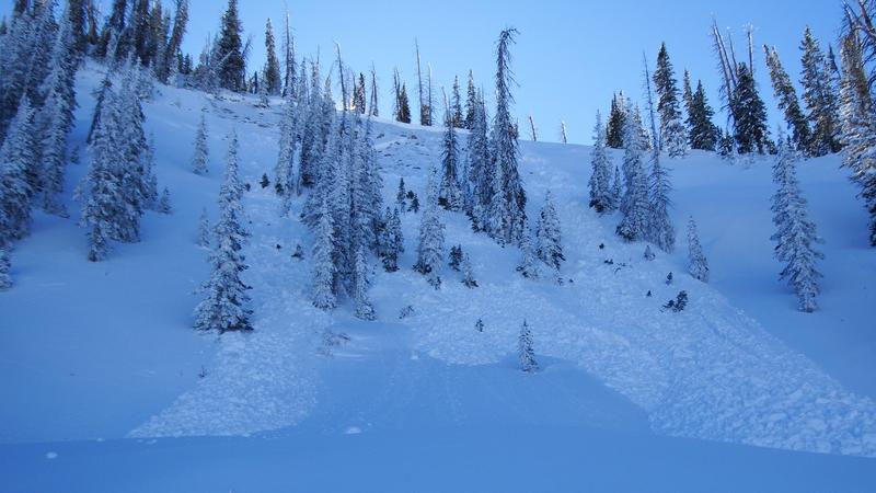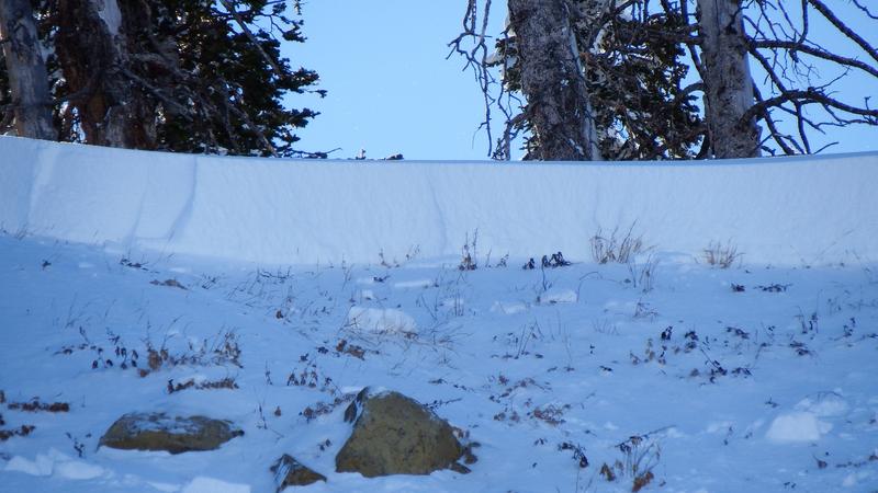This slide path is one of the usual suspects. It slides often. We triggered it while we were passing and didn't realize until we turned around and came back through. It broke into weak, faceted snow at the base of the snowpack.