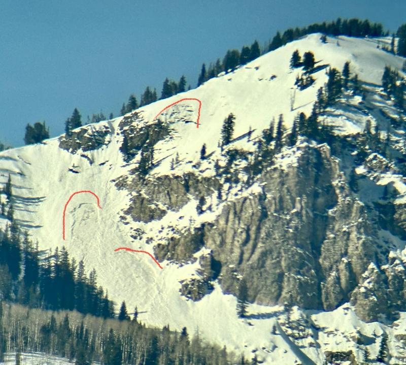 Upper start zone above rocks likely triggered lower portion of this slide.