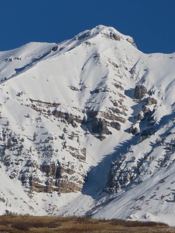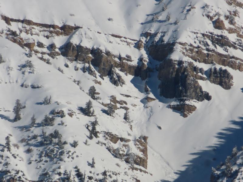 Released lower in slope below rock bands. Upper slope failed to avalanche during the storm.