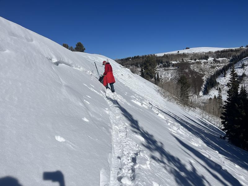 While going to investigate another avalanche, we stumbled onto this one. It is similar in nature to this other nearby avalanche. The pattern is a steep easterly facing wind loaded slope near the ridgeline. Both of these avalanches ran on a stout wind/sun crust. The big question for me was whether old faceted snow was involved. Even with a microscope, I could not definitively say facets were involved. These two slides simply look like a function of wind drifted new snow.