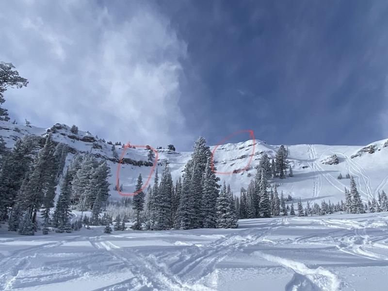 Couple of slab avalanches on the backside of red pine ridge. / one small cornice break it looks like also.