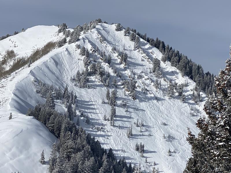 This same slope avalanched on Dec. 9. Areas where the snowpack is thinner either due to lower snowfall or previous avalanches likely hold weaker snow beneath the new snow than in deeper snowpack areas. ie. prime for repeater avalanches as slab develops.