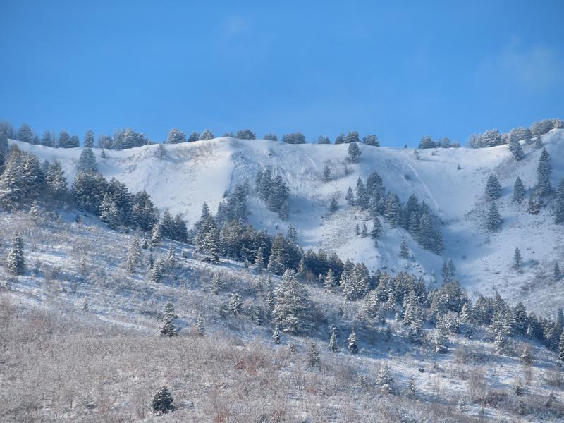Storm Slab avalanche cycle on East side of Cascade Ridgeline. N-SS-R2D2-3 avalanches occured in all three bowls of Bunnells, as well as Big Springs Bowls 1, 2, 3, 4, 5, and 6. Did not have a view of 7 and 8, however they most likely avalanched as well. Avalanches occured near ridgelines at 9700'-10,000. on steep SE-E-NE faces on the old/new snow interface. Some stepped down into old snow below rock bands mid slope. Debris piles only ran into tracks and upper benches. There were several smaller cross loaded slopes around 8000' which ran as well. Most of these slopes are repeaters for the season. Unlike Timp and the Strawberry Ridgeline this zone had enough wind effect to create cohesion in the new light density storm snow to progegate a fracture across slope.