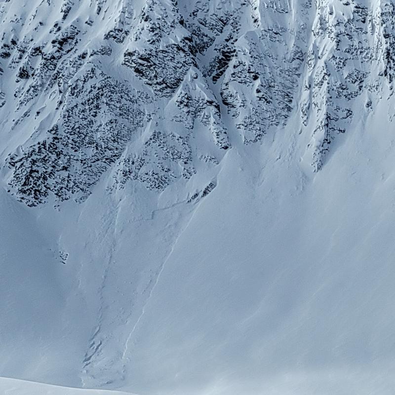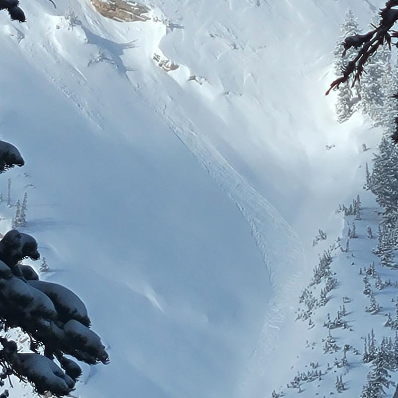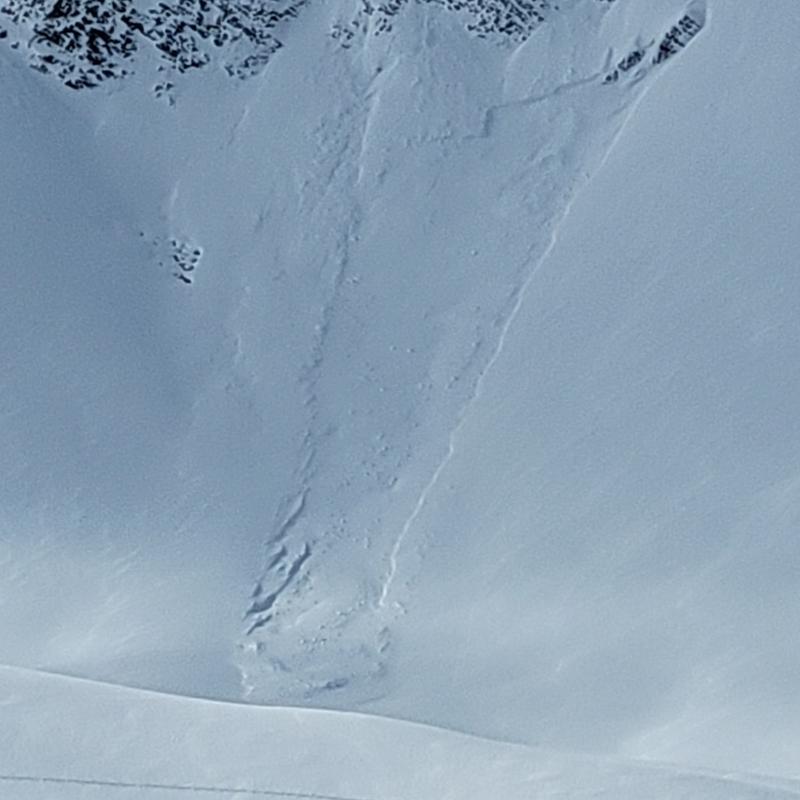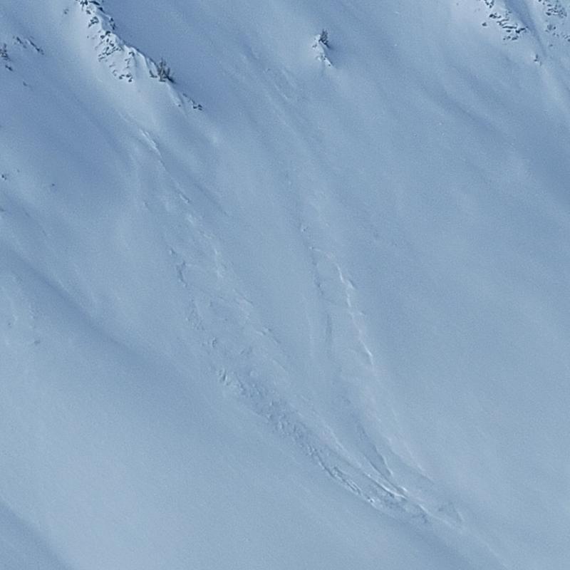 I don't know when this came down but I haven't seen it reported. Sometime yesterday is my guess? We did not get close enough to gather accurate data so the size and depth are a guess as well. Size 2? I'm guessing this was a result of westerly wind loading events. Potentially triggered by dry loose from above. Elsewhere we generally did not observe much of a slab.
