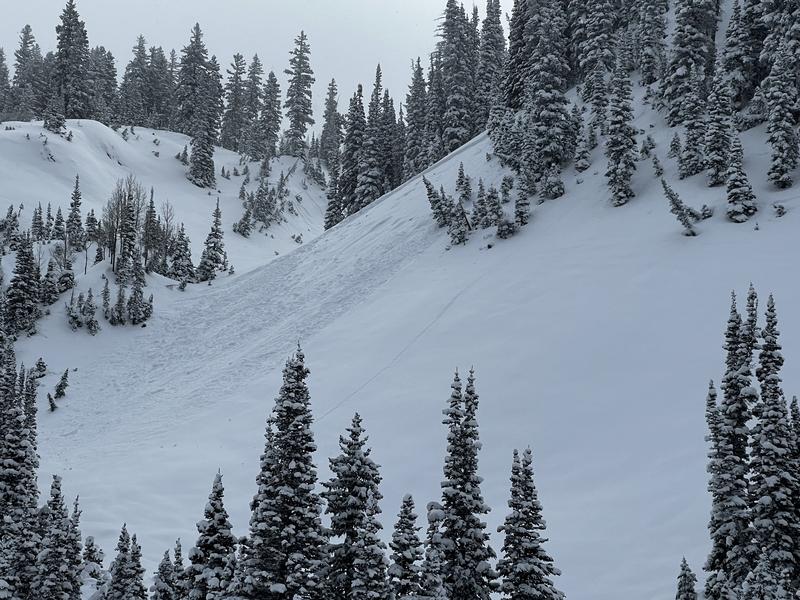 The soft slab likely formed due to wind-loading, possibly was cross-loaded from northwest winds.