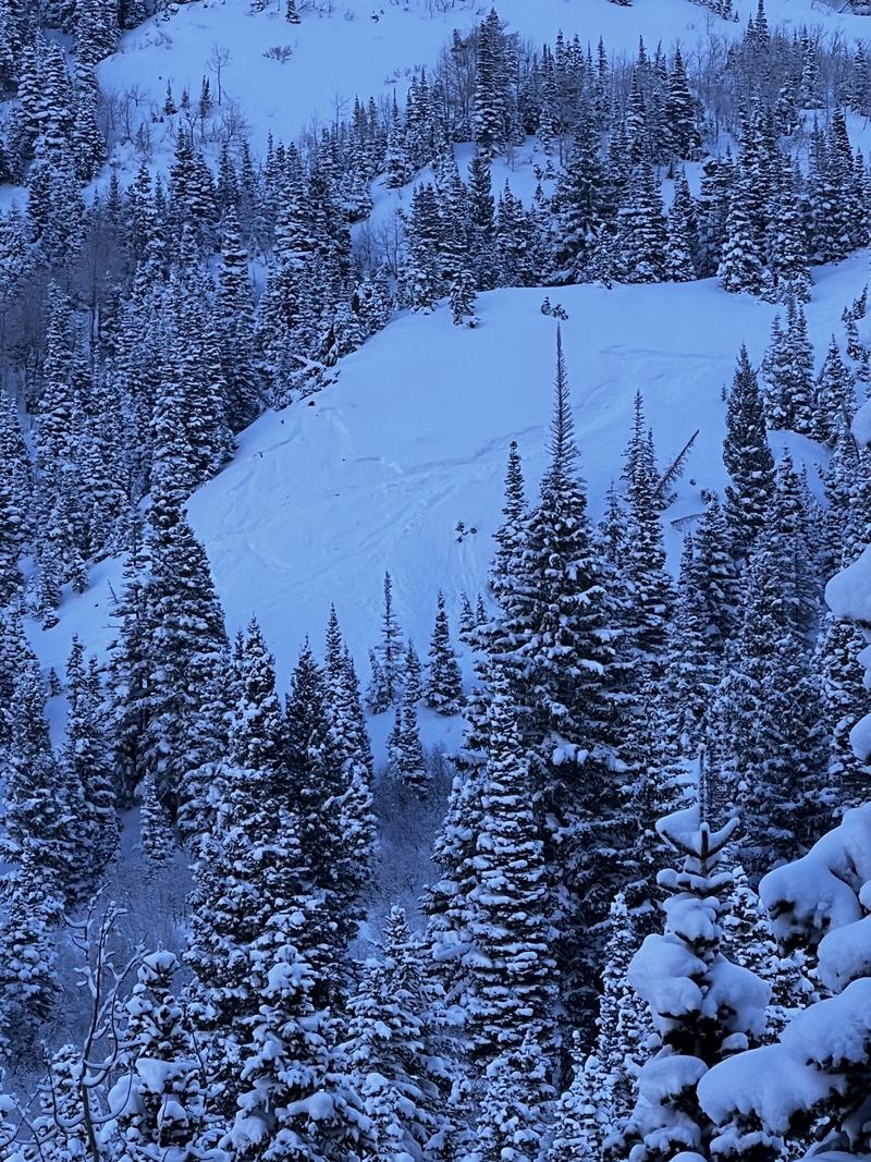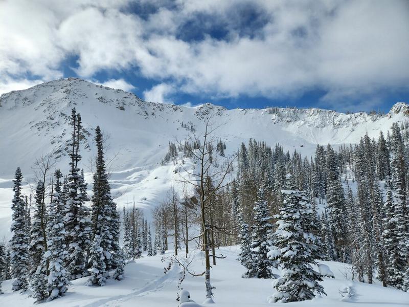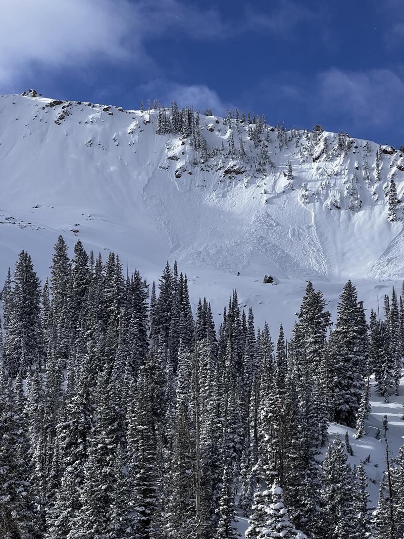 On our tour up the White Pine Fork we noticed 2 small slab avalanches, one on the North West face of the Spire at 9600' from the previous day, and the other on a Northerly small convex rollover BTL at around 8600' that looked to be skier triggered per the ski tracks running into it.