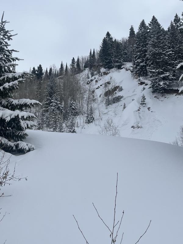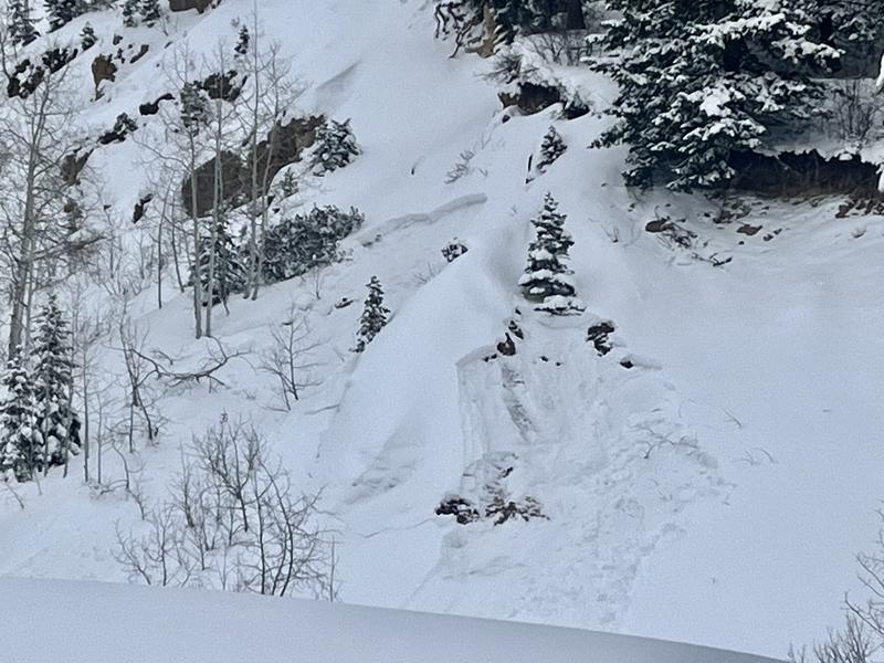 Lower elevation natural avalanche at 7600' on a NW aspect. Not a large avalanche but certainly a portent of things to come as this next storm event rolls in to town, even in otherwise benign terrain.