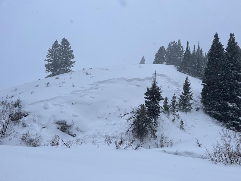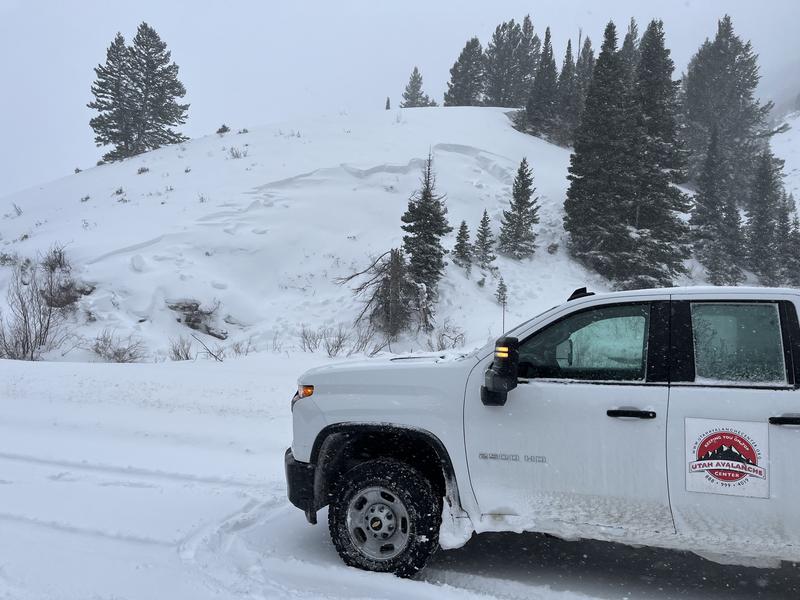We noticed this natural avalanche near Hwy 89 this afternoon. Up-canyon winds and very heavy snowfall drifted in and overloaded the slope.