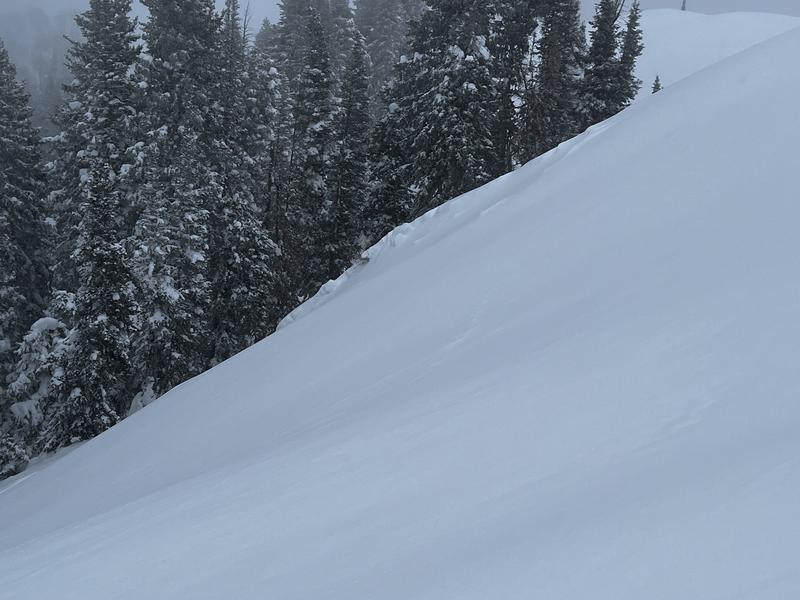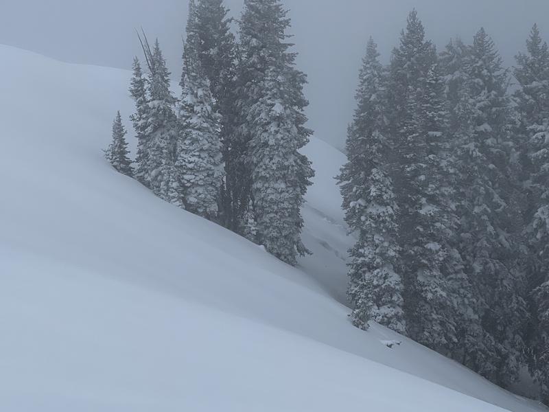 The steep, north-facing slope at the top of Short Swing avalanched. I'm unsure if it was a natural or remotely-triggered avalanche. I had passed through this area on Thursday and the slope hadn't avalanched, so I'm assuming it occurred Thursday night or Friday. This was not a big avalanche (size 1.5) and I have seen larger avalanches on this slope. Adjacent slopes had some wind-loading, so I'm guessing this slope was also wind-loaded.