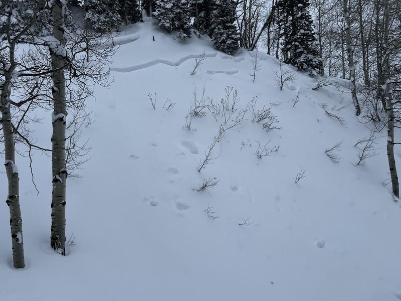 Exiting Powder Park #3 to Mill D North, we came upon this avalanche on a steep slope just above a common descent route from Powder Park. The steep slope terminates abruptly, with a terrain trap below. Avalanches such as this are a great reminder that our current avalanche danger requires that we re-evaluate all slopes and terrain that we usually consider as safe. Fortunately, there were no tracks above or below the slide, so I'm assuming it was a natural avalanche.