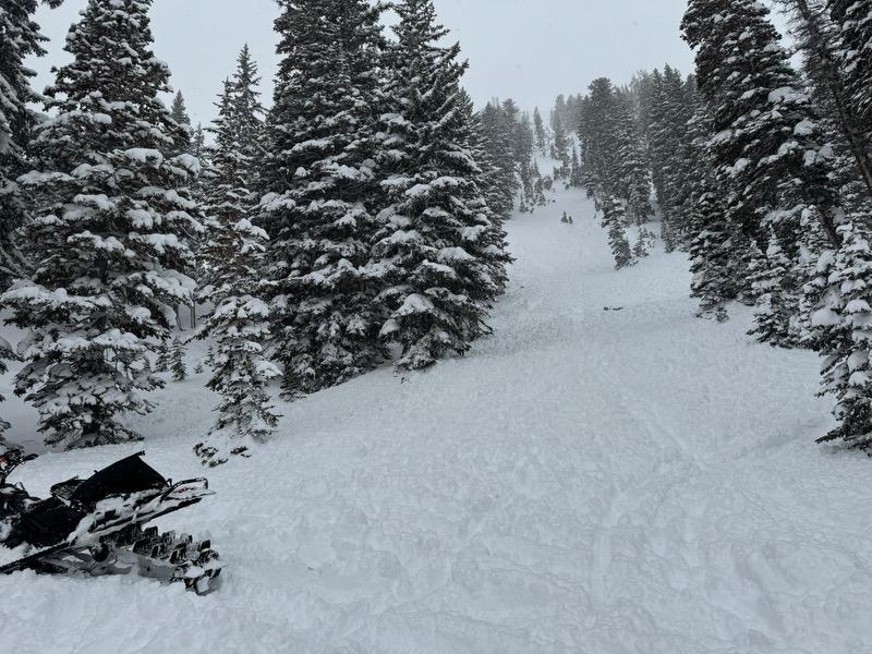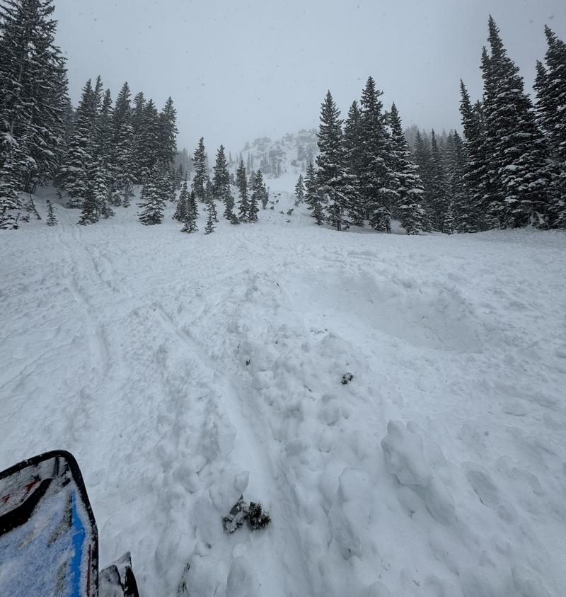 - The third was parked on a bump or a bluff or a high spot that he thought was safe. He saw the avalnache happen but didn't think it would reach him. The avalanche propagated further and ultimately broke above this person and buried him with his hand sticking out. The other two members of the group down in the flats saw his snowmobile partially buried. As the approached the snowmobile, they saw his had sticking out and were able to dig him out immediately.