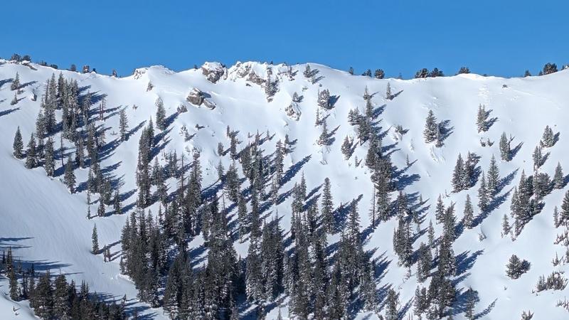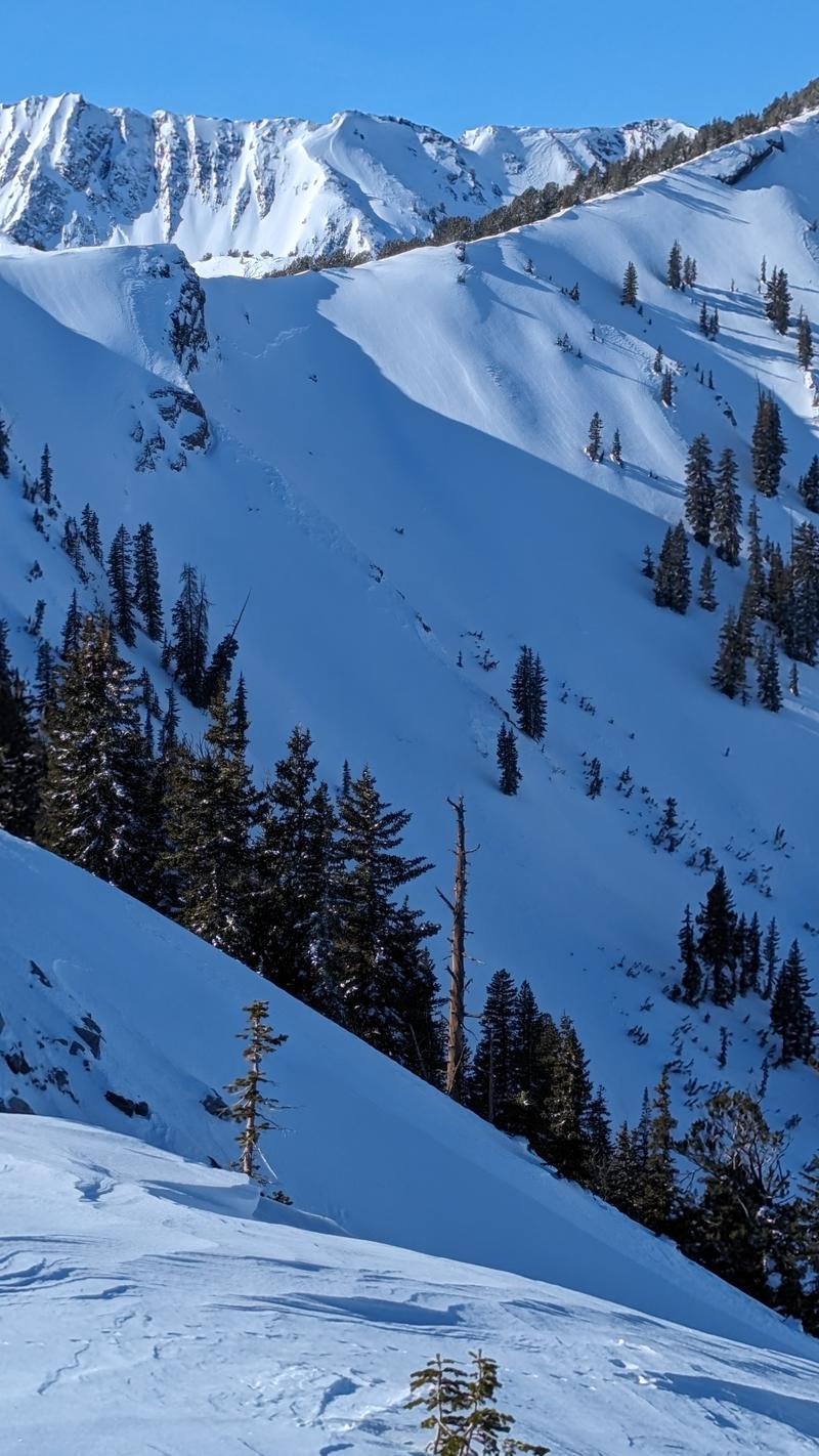 Almost everything from Two Dogs through Upper Days to Main Days slid either during or just after the last storm. Main Days E/NE facing was deeper and slid pretty much full track.