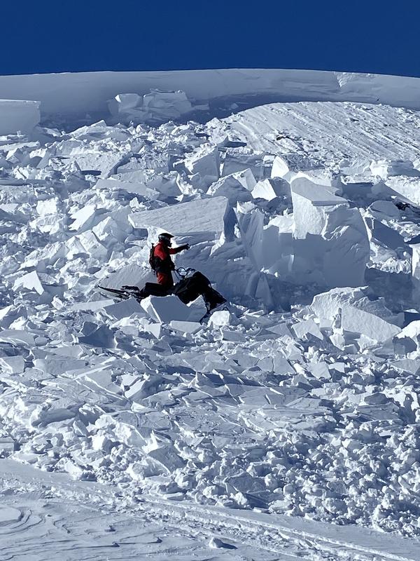 Wind blown east facing slope broke near the top after snowmobile cut across face.
