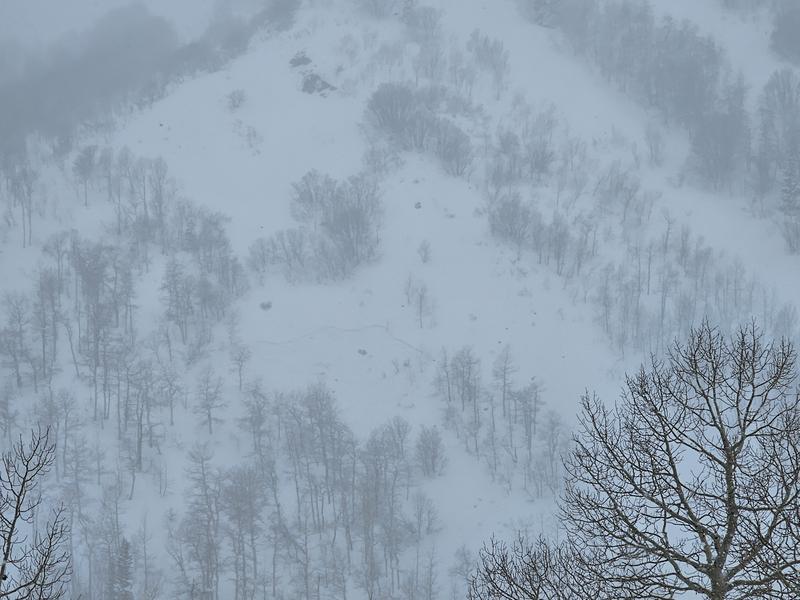 We saw this avalanche on Weathering Heights. It appeared to be in the new snow and maybe 75'-100' wide. Through out the day there were some periods of intense graupel in the AM and intense snow in the early-mid afternoon. There seemed to be a touchy layer within the new snow from this. It looks like that is what this avalanche failed on but it is hard to say for certain.