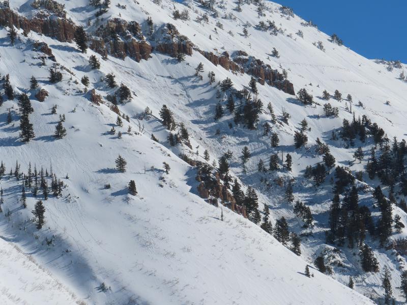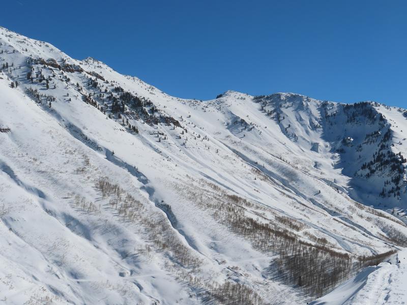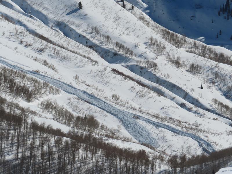This avalanche occurred 4 bowls south of Provo Peak (half way between Provo Peak and Corral Mountain). Warm sunny spring like conditions preceded avalanche. 4 other avalanches occurred on similar aspects and elevations that day. Debris crossed Squaw Peak Road and ran for several hundred feet beyond road.