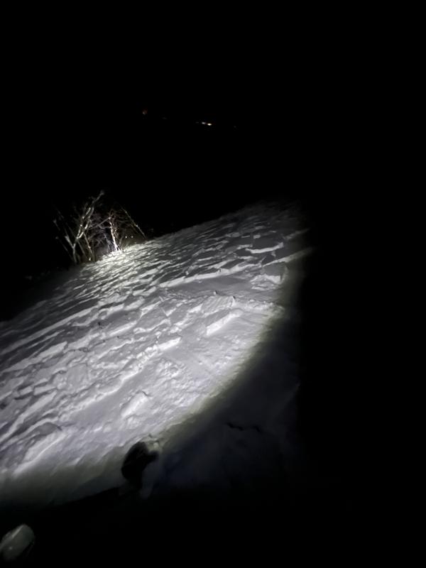 Happened while I was cutting the skin track going up white pine. There was strong down drafts happening in the clearing between the trees. It failed on some new old snow interface. Very spooky