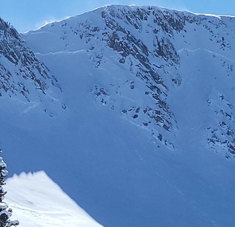 Up in Maybird today and saw a crown which looked to extend from small pass at the base of the N ridge of the Pfiefferhorn to the west facing north ridge off no name baldy. I don't know if this was all one slide or multiple sympathetic releases. Either way, absolutely massive avalanche activity in upper maybird mid storm. I did not get close but I assume this is new snow sliding on old faceted snow. Debris and crowns were covered with new snow and had some new dry loose activity coming off of the NE face of Pfiefferhorn.