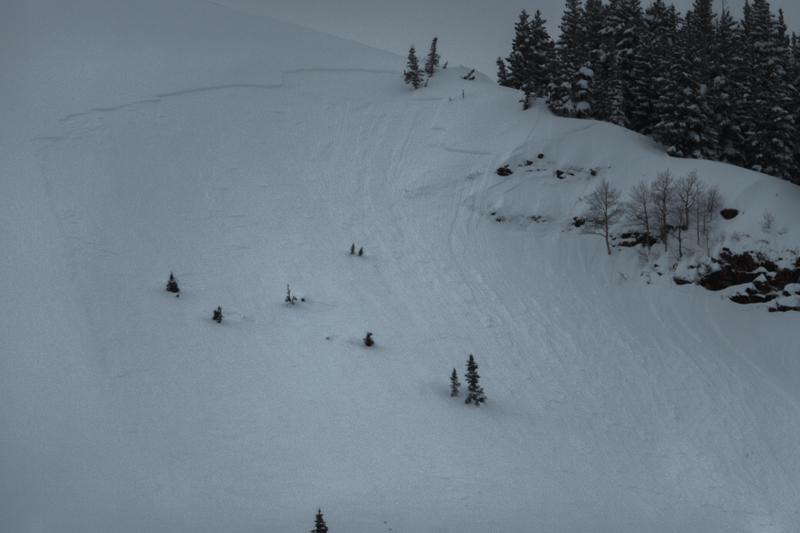 I am unsure what triggered this avalanche. I suspect it was a natural avalanche since there were no tracks in the immediate vicinity that I could see. Our group triggered a similar shallow avalanche on a heavily wind-drifted test slope nearby as we climbed up to the ridge.