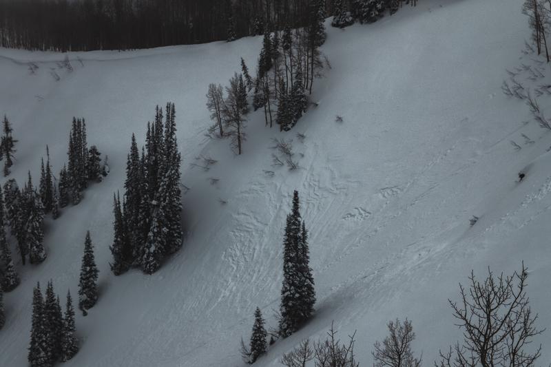 Light was poor and made viewing the extent of this avalanche difficult. There was no visible crown for the most part but avalanche debris was visible low on the slope across almost the entire West Willow Ridgeline which wraps from N-E-SE aspects.
