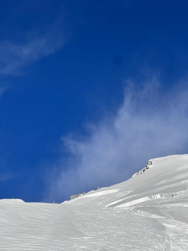 I watched a snowboarder pop a windslab while riding from the summit, over the rocky exposure. I lost sight of the snowboarder until I overheard his filmer make contact on the radio from down the ridge that he was safe and out of harms way. I than watched another rider ride the riders right line from the summit amd into the apron safely with a bit of sluff moving.