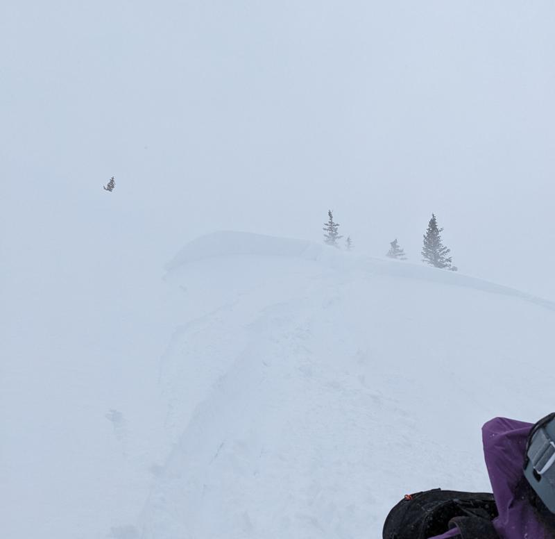 I dropped in and cut the line across and the slope fractured and released. The fracture propagated across the entire entry of the line and it ran about 300 vertical feet. The crown has a maximum depth of roughly 2.5'.