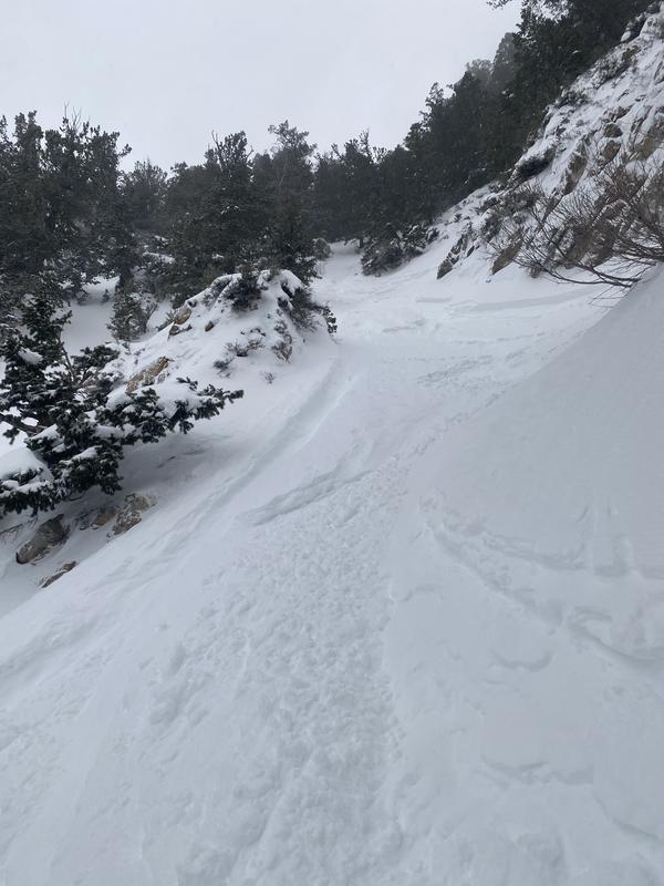 Small storm slab that seemed to have failed on a sun crust. Propagated 10'-15' and ran about 200'.