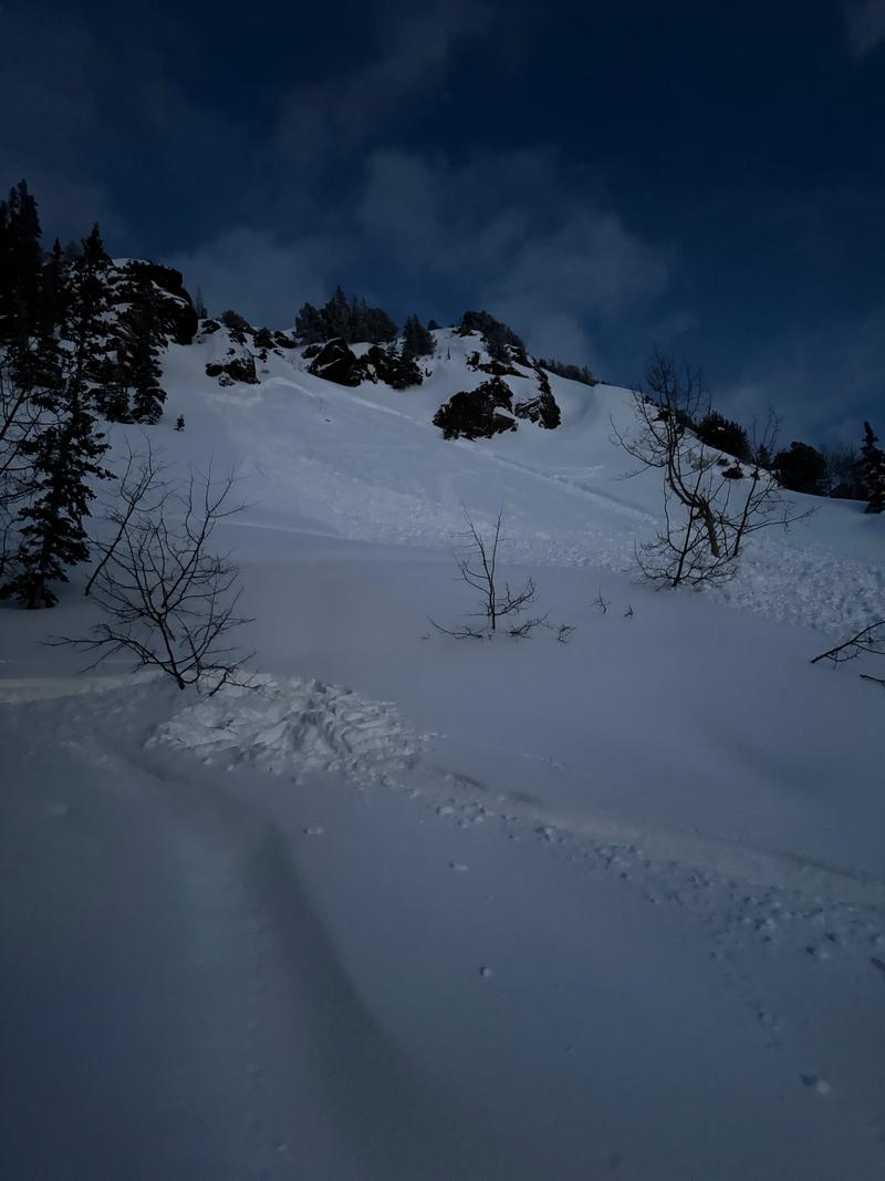 Forecaster notes: Went up and looked at this slide in the last of the day's light. It failed on small grained facets above a 4 finger melt-freeze crust. The mostly soft slab debris had chunks of other crusts in it and was potentially a a rime crust that was identified on the 14th on west facing slopes.