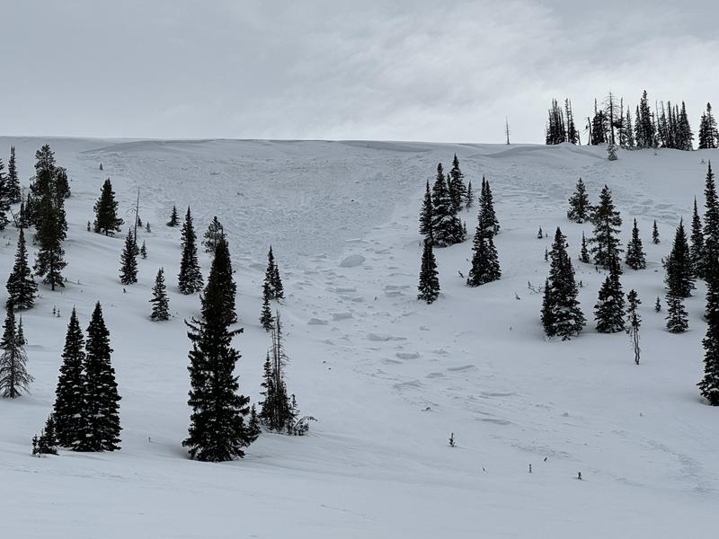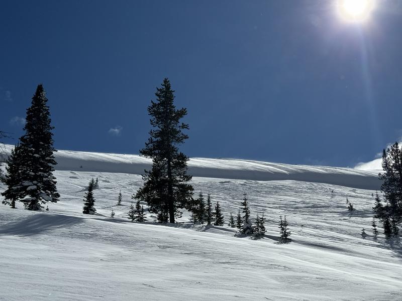 Southerly winds are wreaking havoc on the upper north-facing bowls. Neeley has been repeating naturally a few times in the past week. See photo for crowns on skiers left of Neeley.