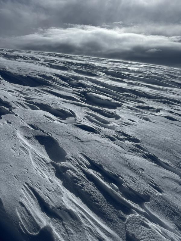 Next two photos are the wind-stripped Duchesne ridge and a large pillowed wall of wind-deposited snow in a north bowl.