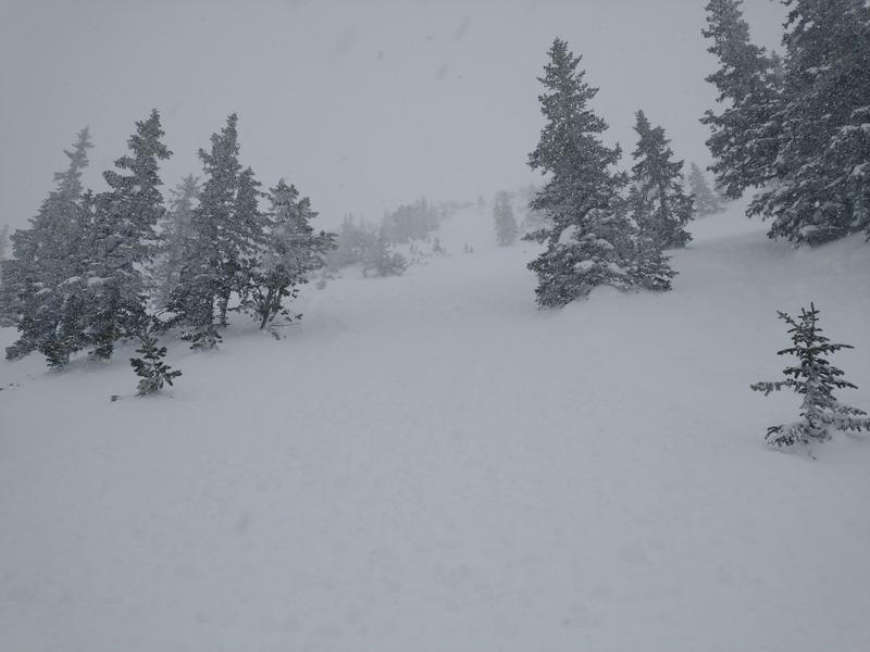 This is a notorious location that I should have avoided especially given Trent’s warning about thin, rocky, steep terrain. This spot has all three and I could have easily dropped a couple hundred feet and made a much safer entry. Fortunately, there was not a lot of propagation from the shallow crown. Only softer new snow failed and slope angle decreased quickly. I stayed afloat and was able to self rescue with no notable injuries.