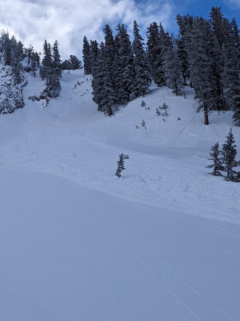 This small avalanche is on ridge and butted up against cliff band, as far skiers right as you can get. I talked to group who triggered so if they post that's great use theirs, they said they cleared it out so I'm guessing they ski cut it n didn't get caught. debris 1' deep -not enough snow to bury a person in this run out. Avalnche ran 200'