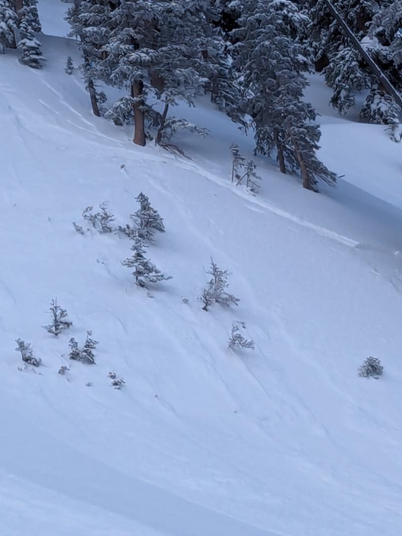 dimensions are a guess. new snow. saw another micro avlanche similar depth skirt triggered adjacent to this one in trees off ridge.