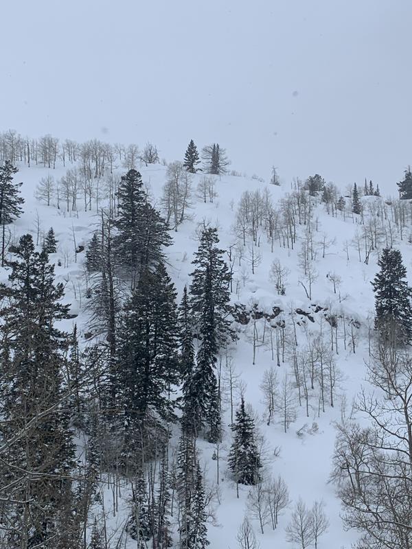 This terrain is analgous in aspect, though lower in elevation (and likely saw less wind) and with a higher angle slope to that of the east side of Castle Peak--pretty appealing ski terrain. I've submitted a separate obs for Castle Peak to document some of the wind effect..