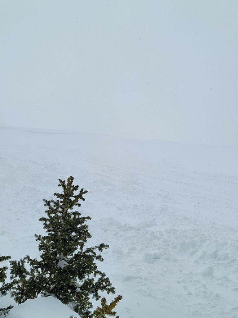 Four of us set out from Spruces to climb Little Water Peak and to ski Shangri La in search of soft protected northern facing snow away from the crowds. There were no signs of instability on the way up but strong winds were present and noted. After transitioning to ski, the group skied down the northwest ridge of Little Water about 30-40 yds, which was slightly wind-scoured and firm, to look at the north-northeast face. There were no signs of instability on the ridge nor were we punching through on the turns down. Once lower down on the shoulder while facing east, it was observed that the northeast face was wind loaded and was said out loud by skiers 1 and 2. Before we could turn back west towards Shangri La, the snow suddenly gave way on the shallow shoulder where we were standing and broke only about a foot deep. Unfortunately, a crack appeared running back up the ridge and what appeared into the cornice above the group higher up the ridge which was connected to the shallow shoulder we were standing on.