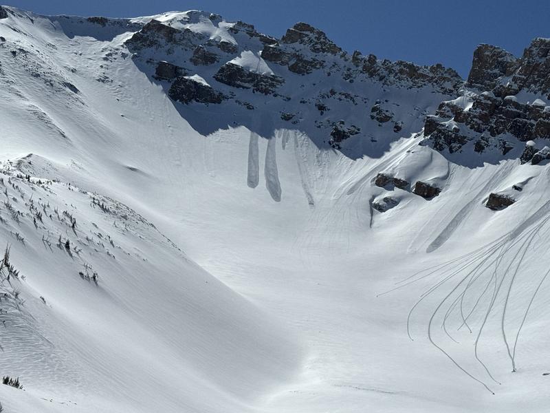 Noticed lots of soft, long running slides producing debris piles up to two feet thick, running anywhere up to 1000'