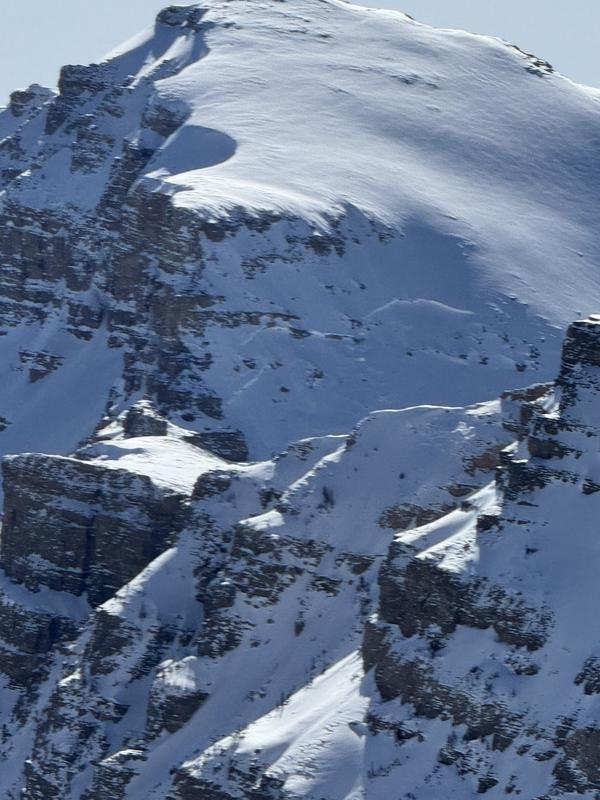 Went into the West Fork of Blacks Fork today to recon a couple peaks and ski lines. Snow was generally dry and soft although in places the surface was strafed by the wind with a thin breakable crust. The area in which I traveled, generally South of Mt. Beulah, was somewhat protected by the strong SW winds. These winds scoured the west faces but interestingly did not result in the massive cornices seen further to the east and in the Wasatch. As the day progressed I began to see some roller balls but this was the only indication of instability I found all day beside the long-running sluffs which seemed harmless enough. I avoided anything overly steep and rocky on the outside chance that things could step down below the fairly hard new snow/old snow interface on which the long sluffs were running. Across the way in the Left Hand Fork Valley I observed a large slide which had pulled out on the North Face of the Cathedral where it rolled over below the summit at about 11,800'. It was far away and hard to estimate but it appeared that the crow was several feet think and propagated at least 3-400'