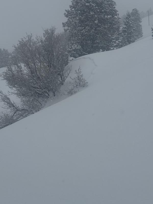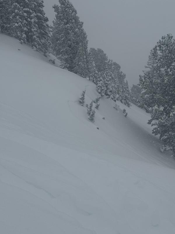 From 8-11am there was light snowfall and no wind. Measured HS270-170 along skin track and dug a few hasty pits. Crust layer was 45cm down and new snow was well bonded. There seemed to be a weakness within the new snow maybe 10cm down that natural soft slabs were failing on as well as skier triggered sloughs. Many steep convex rollover had naturaled sometime during the night in the new snow and skier triggered sloughs abounded including several that I triggered. The weight difference between my partner and I seemed to matter as the snow seemed more responsive to my performance endurance layer. Tried to ID the new snow layer with shovel tilt tests but there were no clean fractures. Messy ECT tests too. Maybe some lake enhancement around noon: the lower canyon was a mess as we exited.