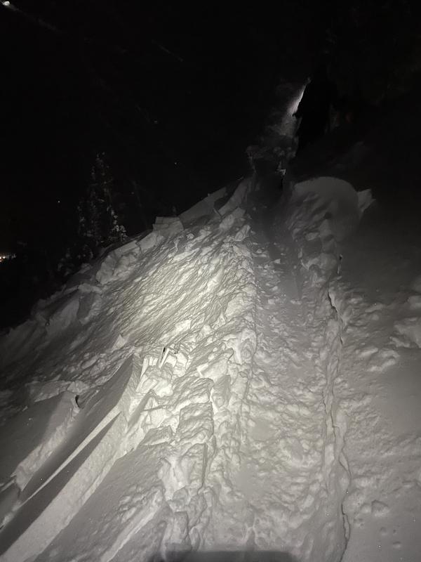 Heavy wind loading in south aspect of the superior ridge line. The lead of our group of 4 was breaking trail and caused the breakpoint below the skin track. Slab/crown broke about 14" down to the older snow surface. Decent propagation and cracking. This happened mainly on the south aspect of the ridge, but also on the north aspect though the slab breakpoint was smaller 5-6".