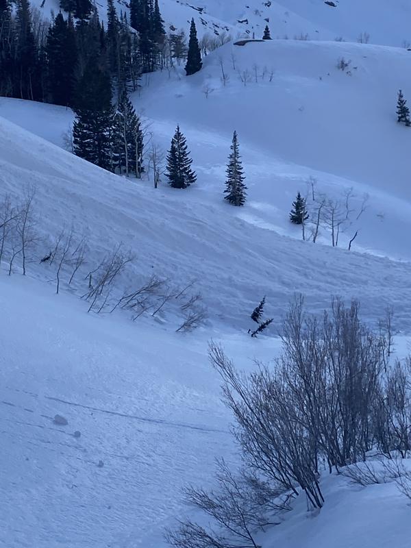 While hiking up-trail to below Sundial I noticed this avy and decided to check it closer on my way back to the TH. As I approached the avy I was surprised at its size. It had ran quite significantly starting at the top of the chute. The snow appeared fresh and didn't appear to be wind blasted from the weekends easterly winds.