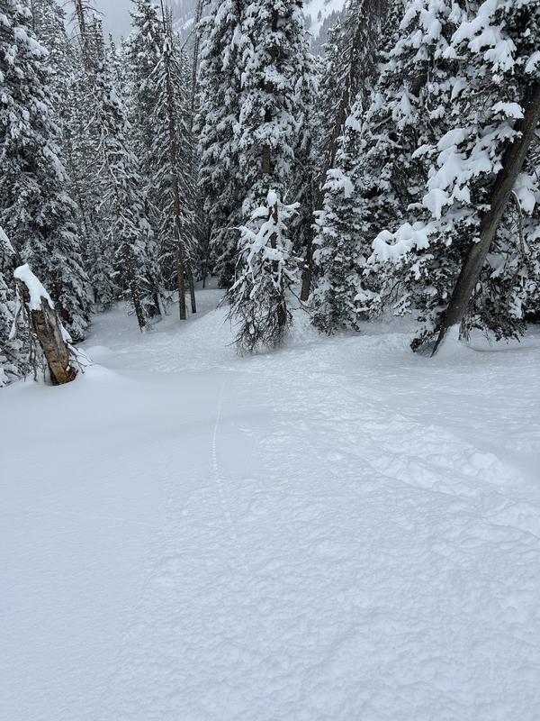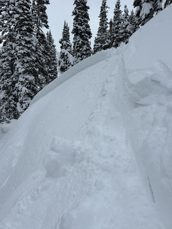 Triggered a small slab on NE facing aspect in the trees in Cardiff Fork below Montreal Hill.