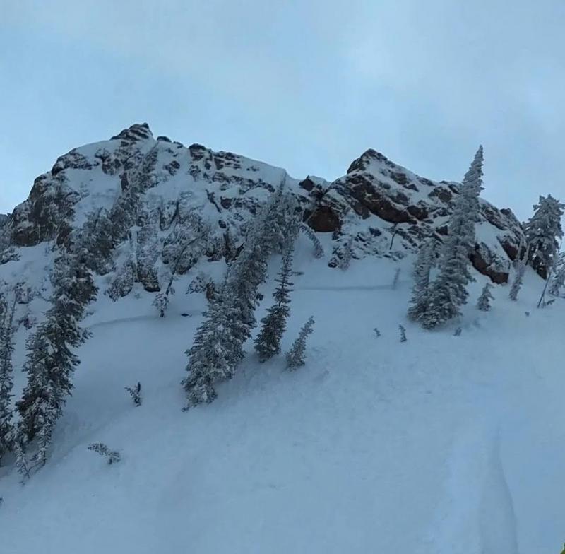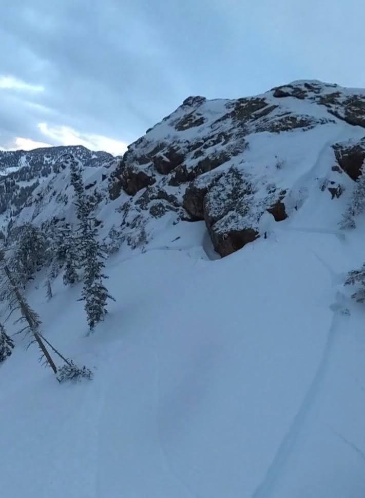 Starting down Memorial 3-4, we suspected the slope could slide since it didn't have signs of already having slid. Skier 1 cut it with no results and then dropped to an island of safety. Skier 2 (on a snowboard), still not trusting the slope, followed skier 1's tracks and popped the entire slope out to about 200' to skiers right under a set of cliffs. Skier 2 skied to skiers' left to an island of safety. Skier 1 was hit from above by the slide but largely shielded from most of the snow by the tree they were standing down slope from. Slide ran full track to below the waterfall (1500' vert).