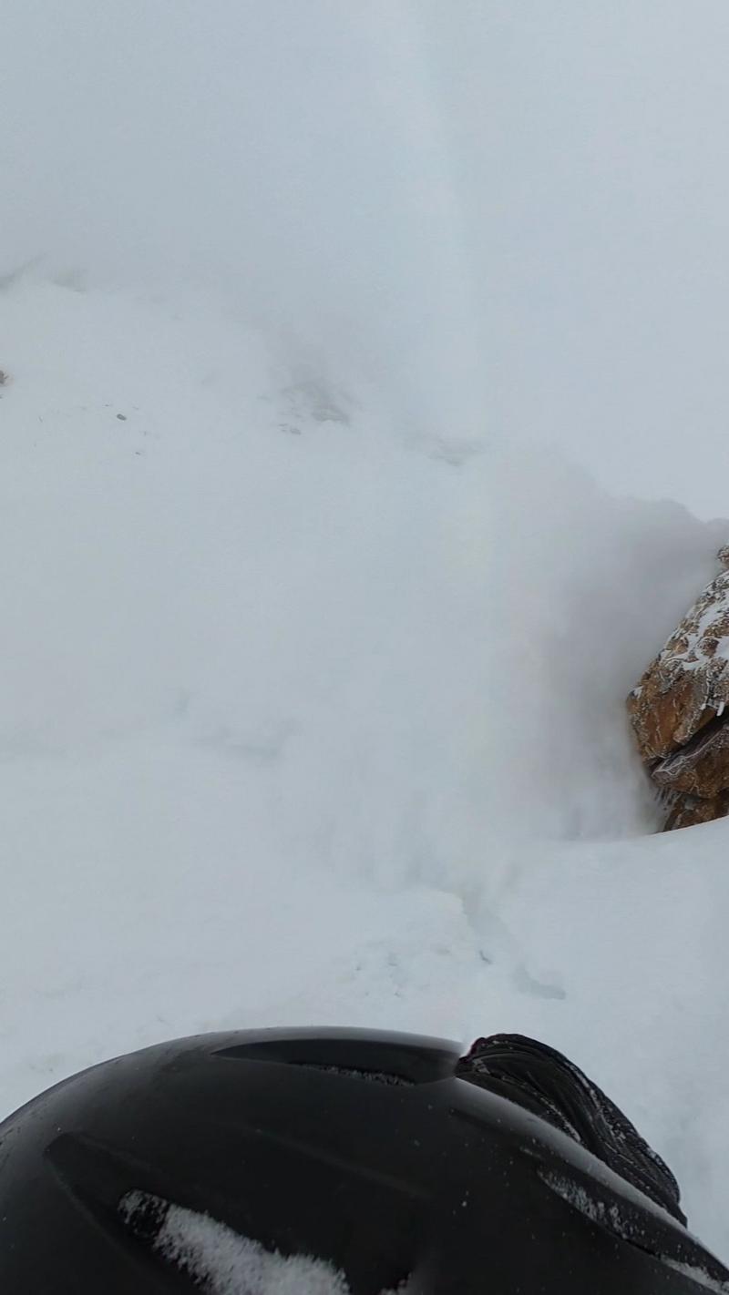 A few hours later, I reviewed the gopro footage and realized that the slide was almost certainly a natural due to cornice fall as it came barreling over the cliffs skiier right of the upper couloir. This can be seen in the included video, though I cut out the audio to keep our names anonymous. Winds though they had died down quite a bit in the morning as they were forecasted to, must have pushed the cornices to tether on their limits. That and potential winds slabs are why I had abandoned my original desire to go up white pine chute this morning. Needless to say, though we had planned to by down the route within 10 min had all gone according to plan, stuff can happen and one can get unluckly. In our case we were both unlucky and very lucky. We all tend to push it in the mountains, especially in the Wasatch and other popular mountain areas. We do it for that reward of great run after run and we try to mitigate risk. However, we get drawn into these false senses of security especially and complacencies when we and so many others go out, do something rad and come home day after day. We work on managing risk and I think as a whole we are much better at it than the population was 50 years ago largely due to amazing avlanche and mountain eduction resources. But we all still for the love of the thrill in the mountains, do push it, whether we like to admit it or not, or whether we are going to give it up or not. Anyways, rants and lessons aside, I feel as though I try to be aware of a lot of the dangers and make smart choices while still getting out there in the way I love. But this just goes to show that surprise accidents can still happen.