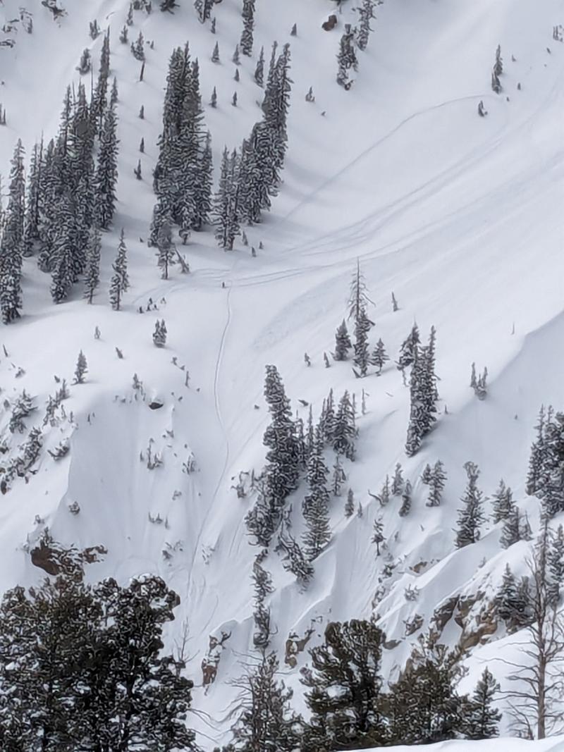 I saw this from green slope and only could make out part of it, bit tucked away around corner. A guess would be '400 vert. It could have easily been a natural heat triggered off rocks but 5 snowmobileres in that spot at the same time make me think they triggered it. I couldn't see top 1/2 of it.