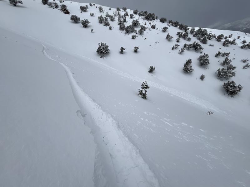 Looked like a smaller, slow moving wet slide that ran down the steeper, upper portion of the false summit main face/bowl