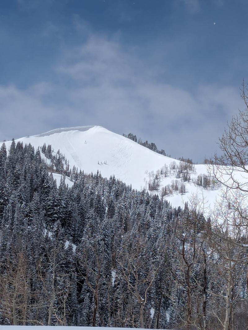 Noticed this on the way back from powder park 1. Ski tracks and slide debris appear to be from today. Cornice looks to still be intact, but hard to tell from a distance.