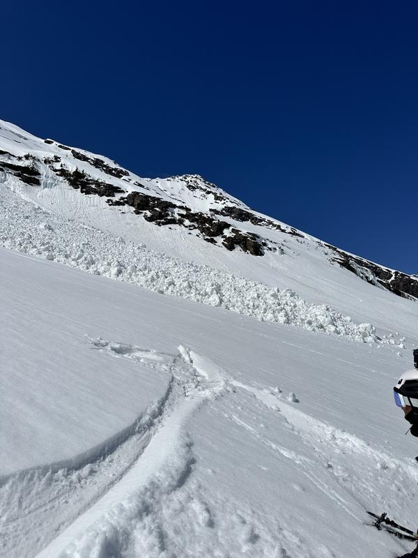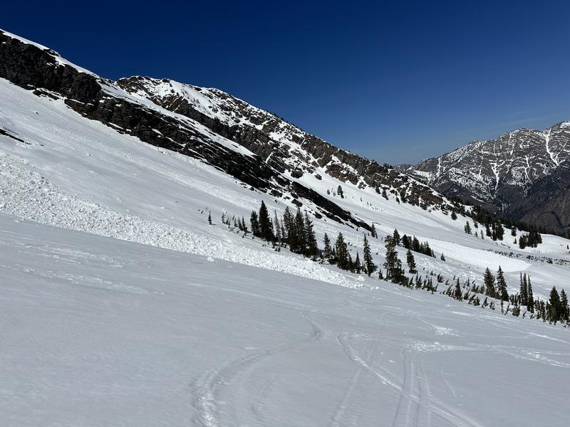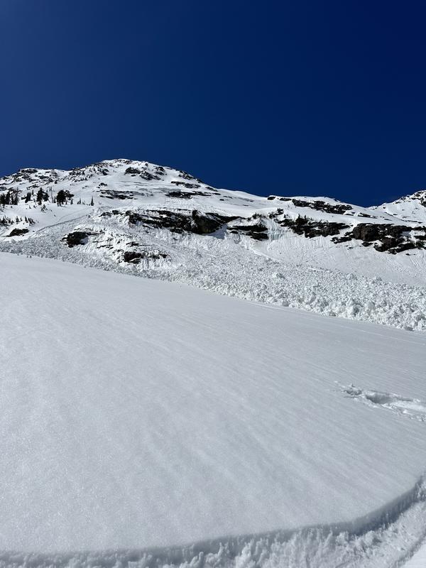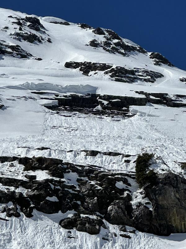 As expected, Broads Fork is starting to fall apart from glide avalanches. Went up Twins early Saturday morning, and saw the debris from at least 3 massive glide avalanches from the northeast face of Twins, to the northeast face of Bonkers. These are full releases of multiple feet of snow/ice from the rock faces. Not sure when they occurred.