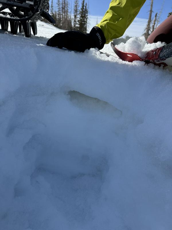 noted previous storm consolidated to 8-10" of a soft/wet slab on top of weak/wer snow.