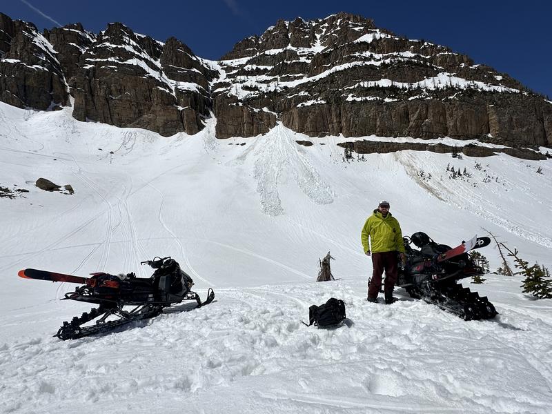 Evidence of wet slides all over the bald mountain pass aspects and surrounding mountains from previous days of heat.