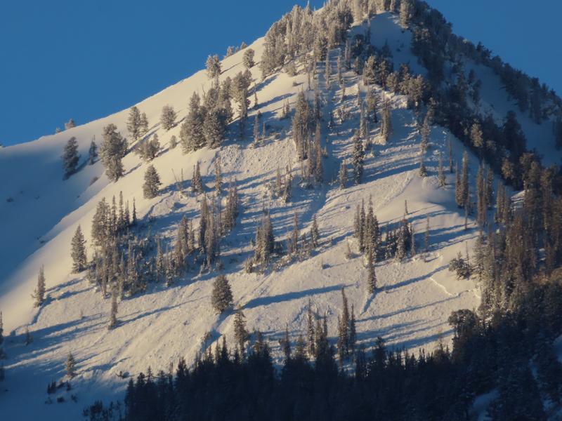 Weak faceting early November snow at the ground was capped by 12"-20" of new snow. The last warm SW storm deposited an increasing density snow throughout the first 2/3 of the storm then dropped in density the last few inches as the NW cold front dropped in. This higher density layer in the mid pack created a very supportable layer that helped bridge the entire slope and aided in propegation across a wide area. Notably, certain sections of the slope with slightly lower slope angles failed to avalanche, while all surrounding peices of snow did fail.