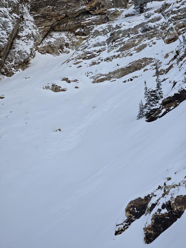 Touchy new snow and more of it than I expected. Kicked off a small slab in the steep terrain adjacent to sundial ice. Baby slab in the low density new snow. We saw multiple point releases and small slab releases. All d1s but a good tease at what's to come if we get a substantial load.